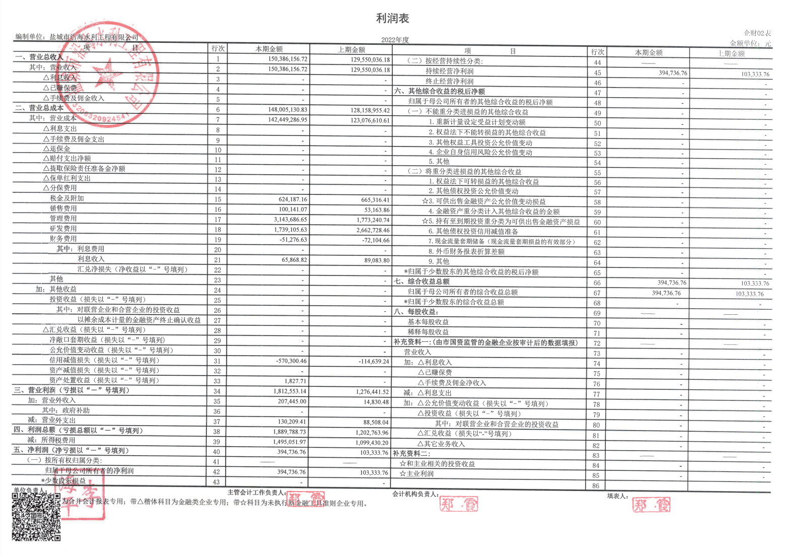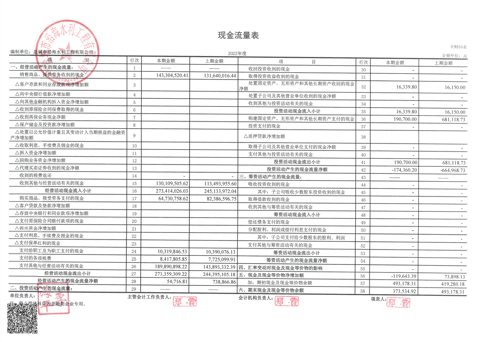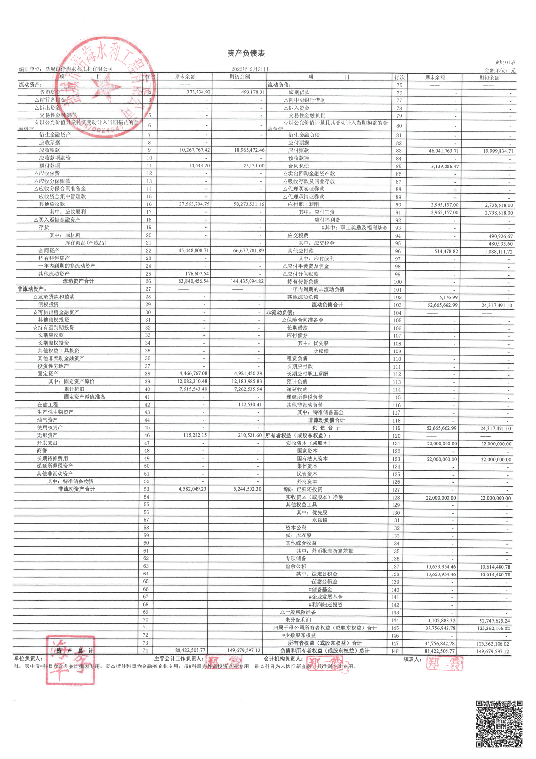 盐城市沿海水利工程有限公司2022年报表